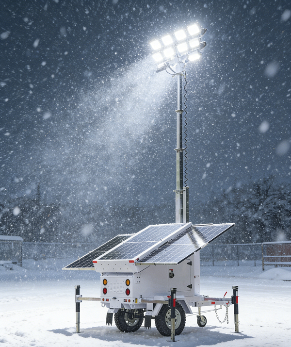Why Diesel Light Towers Struggle in AlaskaDiesel equipment is notoriously unreliable in extreme cold. Here’s what goes wrong: 1. Fuel GellingDiesel fuel contains paraffin wax that crystallizes at low temperatures. At -10°F, untreated diesel begins to gel, clogging filters and fuel lines. At -40°F, even treated fuel can turn into sludge. Mine operators must add expensive anti‑gel additives or use #1 diesel – which has less energy content and is harder to find. 2. Battery FailureLead‑acid starting batteries lose up to 60% of their cranking power at -20°F. Diesel light towers that sit idle for even a few hours may not restart without a boost – a major problem for security lighting that must work on demand. 3. Engine Heat LossDiesel engines require heat to operate. In Alaska’s interior, block heaters are mandatory, meaning each tower must be plugged in when not running. That requires electrical infrastructure that many remote sites lack. 4. Maintenance NightmaresCold‑weather maintenance is a time‑consuming, miserable job. Oil changes require heated bays. Frozen hydraulic lines break. Rubber seals crack. Every service call means sending a technician into the cold – a safety risk in itself. 5. Fuel Delivery RisksHauling fuel over ice roads is dangerous. Trucks break through. Drivers get stranded. Spills are catastrophic in sensitive Arctic ecosystems. And when a blizzard hits, deliveries stop – and lights go dark. The Solar Alternative: Built for Alaska’s Extreme ConditionsSolar light towers might seem counterintuitive for a region with 20 hours of darkness in December. But modern systems are engineered specifically for high‑latitude, extreme‑cold environments. Cold‑Weather Battery TechnologyOur systems include gel lead-acid deep cycle batteries, engineered to withstand ultra-cold temperatures (down to -40°F) and fluctuating weather conditions—ideal for northern Alaska’s harsh winters. No Moving Parts to FailOur towers have no engines, no fuel pumps, no injectors, and no hydraulic systems. The only moving parts are the optional manual mast lift. This simplicity is a superpower in the Arctic: nothing to freeze, nothing to break, nothing to maintain in subzero conditions. Autonomous Operation, No Fuel LogisticsOnce deployed, solar towers require no fuel deliveries, no refueling labor, and no fuel storage. For an Alaska mine spending $10–$20 per gallon for delivered diesel, this is a game‑changer. The savings quickly pay for the equipment – often in less than 12 months. Designed for Low Sun and Long NightsYes, Alaska has dark winters. But our systems are sized with generous battery banks that provide 3–5 nights of autonomy. During the short winter days, even low‑angle sunlight – or diffuse light through clouds – generates enough power to recharge. And during the summer, 24‑hour daylight fully charges the batteries, storing excess energy for the lean months. Our solar panels are mounted at optimal angles to capture every available photon, critical for high‑latitude sites where grid access is nonexistent. Security Lighting: More Than Just IlluminationFor remote Alaska mines, security lighting serves multiple critical functions: 1. Perimeter SecurityMines hold millions of dollars in equipment, supplies, and product. Reliable lighting deters theft, vandalism, and unauthorized access. Solar towers provide consistent illumination regardless of fuel availability. 2. Worker SafetyShift changes happen in the dark. Haul roads, equipment yards, and maintenance areas must be well lit to prevent accidents. Our high-performance LED fixtures utilize 50–100W LED chips, producing 7,250–14,500 lumens of bright, uniform light—equivalent to a 175W metal halide fixture with up to 70% less energy consumption. 3. Emergency ResponseIn the event of an incident – fire, injury, or spill – immediate lighting is essential. Solar towers are always ready, with no need to start a cold engine or wait for a fuel delivery. 4. Regulatory ComplianceMSHA and state regulations require adequate illumination for active work areas. Solar towers help mines meet these standards without the compliance burden of fuel storage and emissions monitoring.